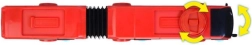 - carrocería roja, construcción articulada, ventanas acristaladas