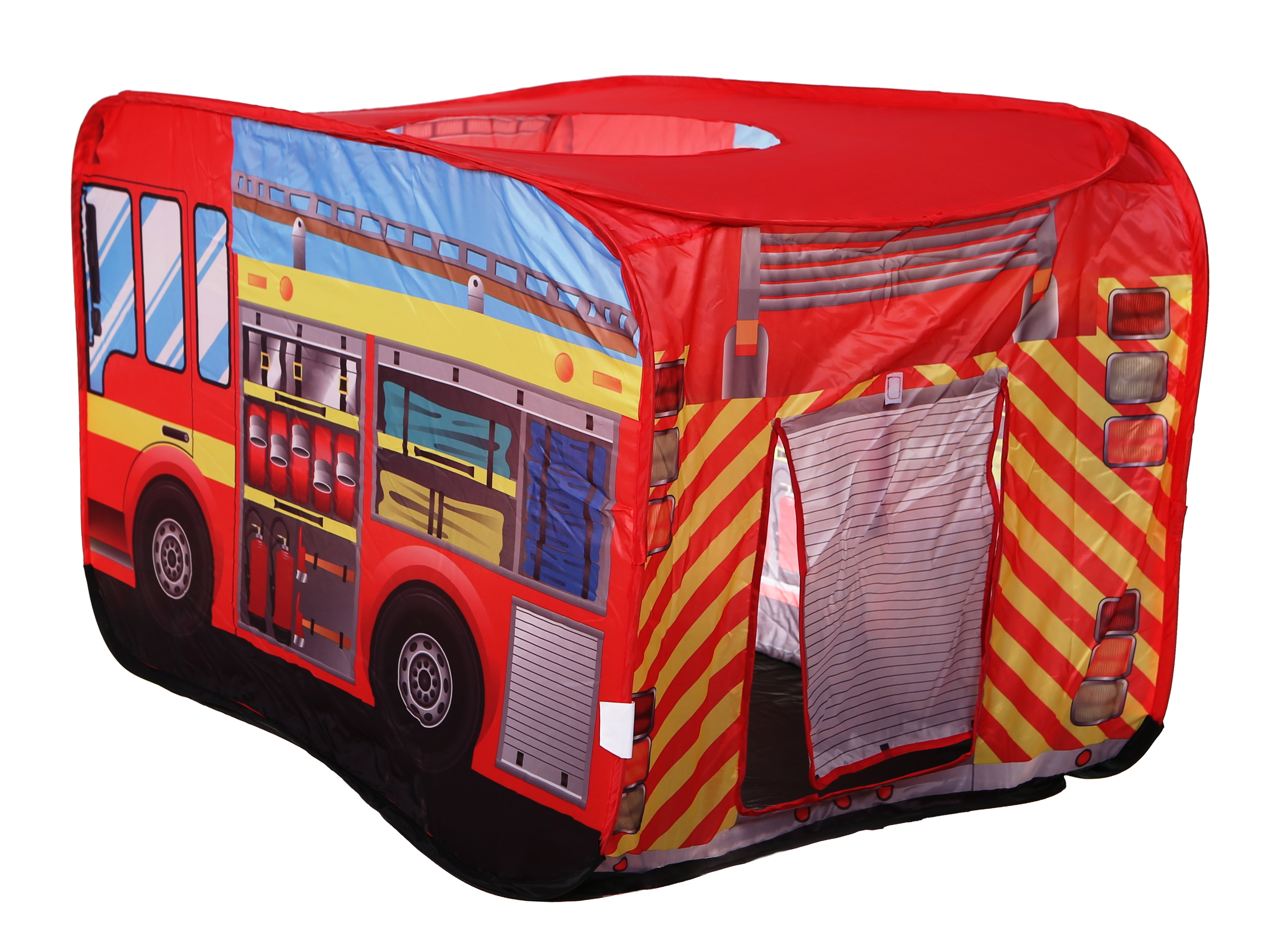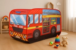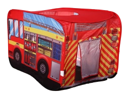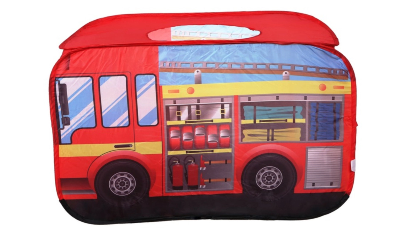 La elegante carpa infantil con forma de camión de bomberos ofrece horas de diversión en casa y en el jardín. Cuenta con despliegue pop-up rápido, suelo impermeable, entrada trasera y techo abatible para un juego aún más creativo. La estructura ligera de poliéster se transporta fácilmente y las coloridas ilustraciones de bomberos entusiasmarán a cada pequeño héroe.