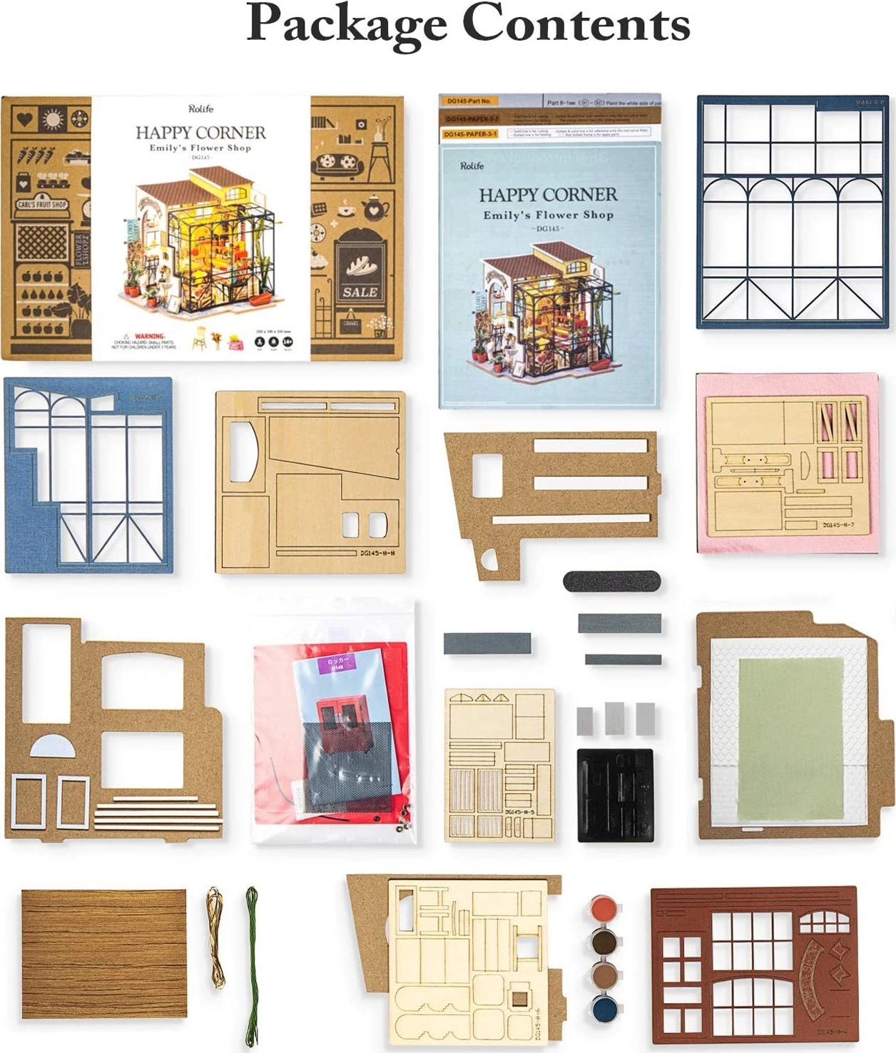Crea tu propia y pintoresca floristería con invernadero adjunto y multitud de plantas, estantes y accesorios tallados. El kit incluye piezas precortadas de contrachapado, elementos de papel y tela y un juego de herramientas, con los que obtendrás un modelo realista con el rótulo “Flower Shop” y parte acristalada transparente. Una vez montado, servirá como una decoración elegante para tu interior.