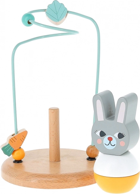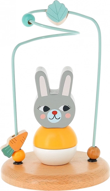 Este laberinto de madera con recorrido metálico y figura de conejito ofrece una actividad divertida en la que los niños desplazan cuentas y formas (zanahoria, hoja) por una trayectoria ondulada. El juguete favorece el desarrollo de la motricidad fina, la concentración y la paciencia, y al mismo tiempo es seguro y estable gracias a su sólida base de madera.