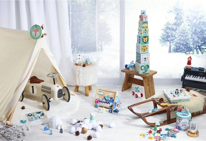 La combinación de madera y metal con bordes redondeados garantiza la estabilidad y una larga vida útil del juguete en el juego diario.