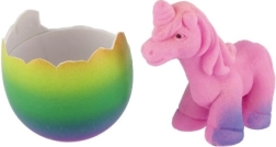 El huevo esconde un encantador unicornio, que comienza a eclosionar tras sumergirlo en un recipiente con agua. Observa cómo la cáscara, tras 24 - 48 horas, se va deshaciendo poco a poco y revela su secreto. Todo el proceso dura aproximadamente 72 horas, ofreciendo a los niños una experiencia divertida y educativa.