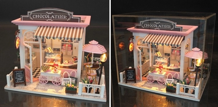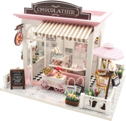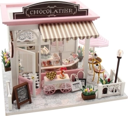 Descubre la magia de las miniaturas con este kit creativo de chocolatería, que encantará a los amantes de los detalles y la decoración. Monta tu propia tienda acogedora con muebles, accesorios e iluminación LED. El set desarrolla la motricidad, la paciencia y la imaginación y, al terminar, se convierte en una preciosa decoración de interior.