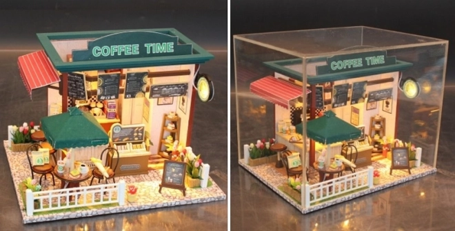 Descubre el encanto de las miniaturas con el detallado kit de cafetería Coffee Time. Monta un acogedor rincón con equipamiento realista, iluminación LED y abundante accesorio de construcción. Ideal para relajarse, desarrollar la motricidad fina, la paciencia y el sentido estético: el modelo terminado se convertirá en una decoración con estilo para tu interior.