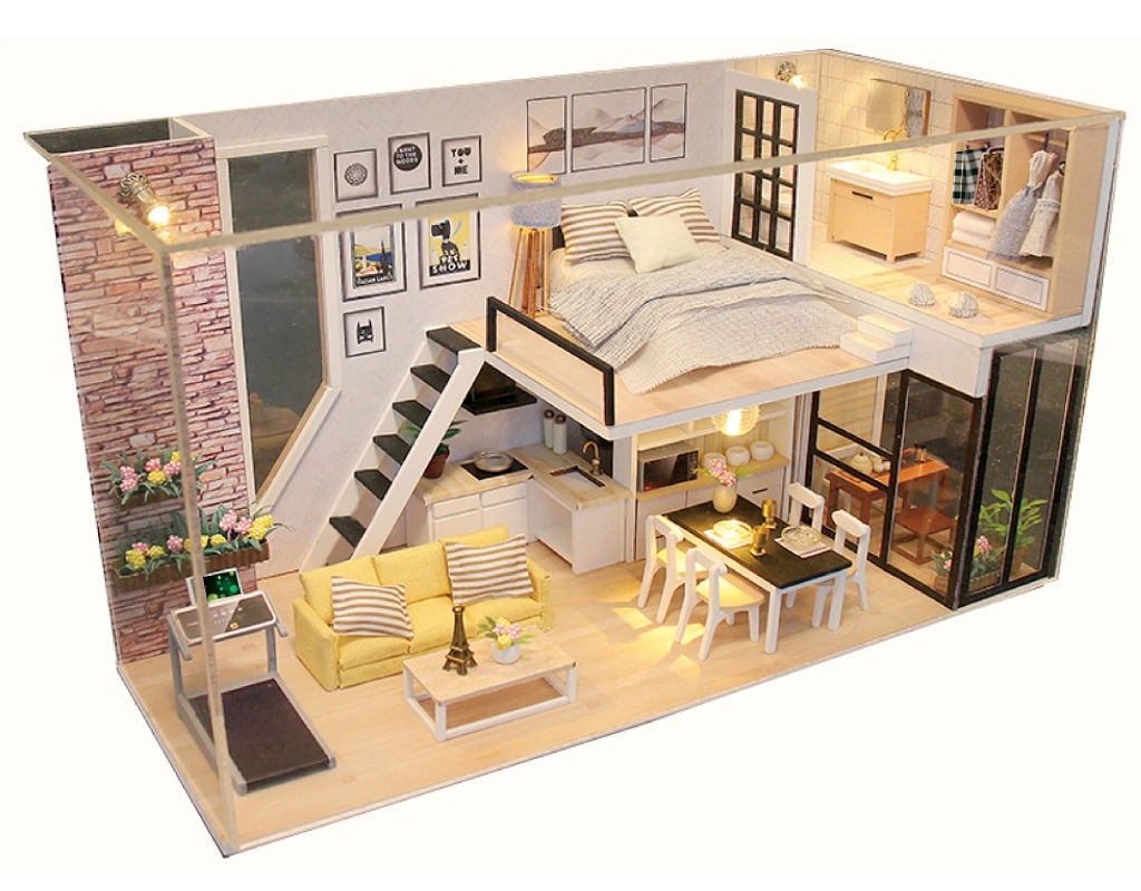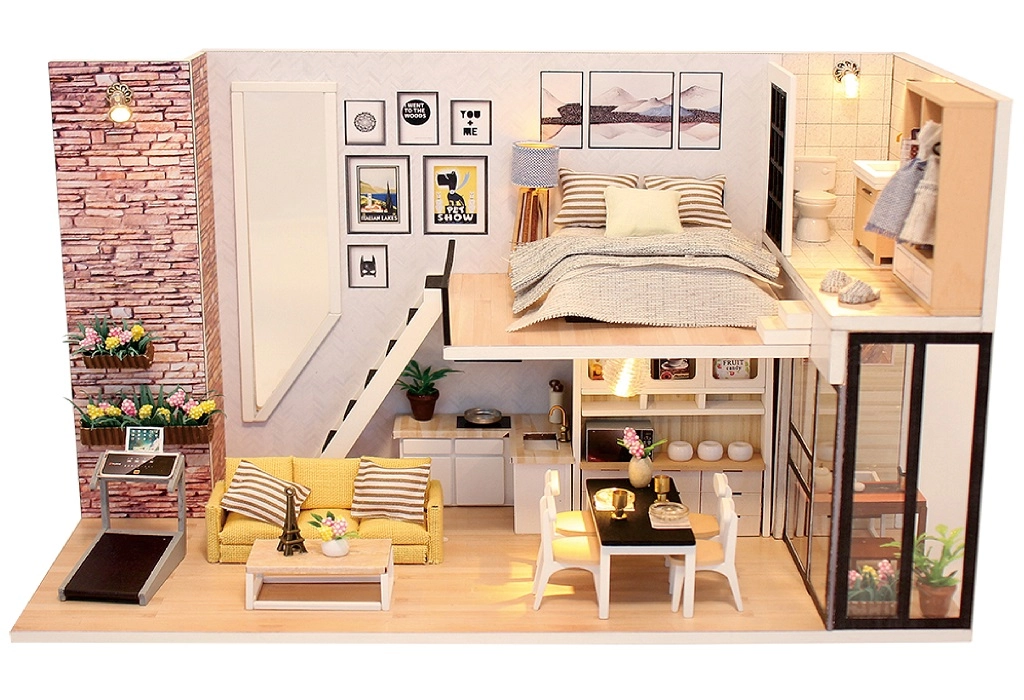 Este kit incluye iluminación LED, que aporta un aspecto realista a tu creación. También destacan los detalles decorativos realistas, que incluyen paredes artísticas, un sofá y un set de comedor.