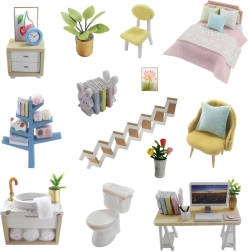 La casita en miniatura Casa de momentos de calma encantará a todos los amantes de las manualidades y los detalles. En el paquete encontrarás piezas de madera, papel y tela con las que, paso a paso, montarás estancias realistas con muebles, accesorios e iluminación LED funcional. El resultado será una hermosa decoración para una estantería, un rincón de trabajo o una habitación infantil.