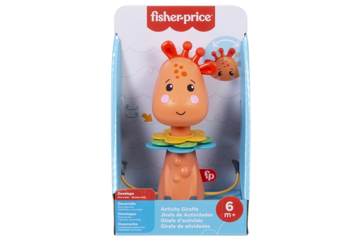 La adorable jirafa de Fisher‑Price ofrece a los bebés a partir de 6 meses un montón de descubrimientos y diversión. Los peques pueden agarrar y girar los anillos de colores, mover las orejitas y tirar de las patitas blandas. El juguete favorece la motricidad fina, el desarrollo sensorial y la coordinación mano‑ojo gracias a sus variadas texturas, formas y sonidos.