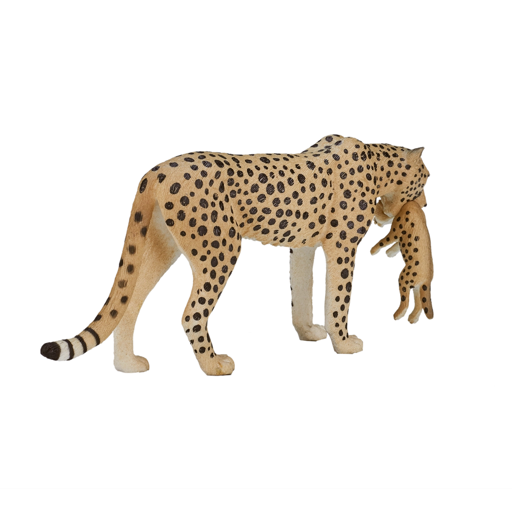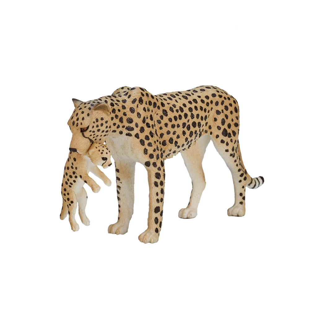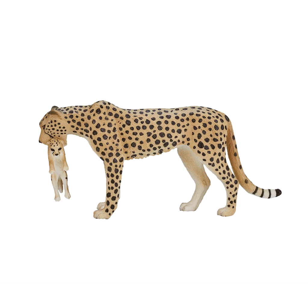 Descubre el mundo de la vida salvaje con la figura realista de guepardo con cría de la marca Mojo. El modelo impresiona por el detalle del pelaje y la coloración, gracias a los cuales los niños identifican fácilmente los rasgos característicos de este veloz felino. El material resistente y no tóxico es ideal para el juego diario y la educación.