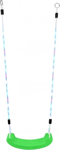 ¡Enciende la diversión al máximo! Este columpio infantil en color verde combina un asiento de plástico duradero con iluminación LED directamente en las cuerdas. Gracias al mando incluido, puedes cambiar fácilmente entre varios modos de luz y crear una atmósfera mágica en el jardín, el parque o la habitación infantil.