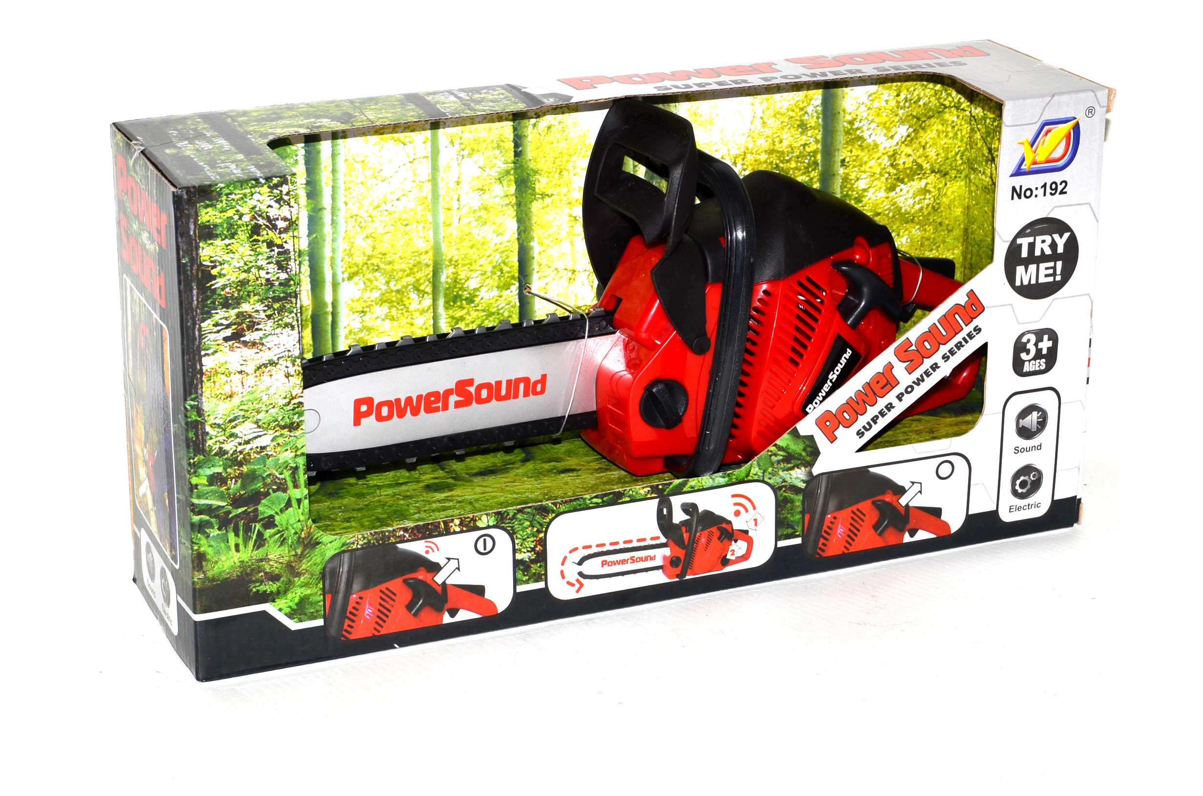 Motosierra infantil realista de plástico para pequeños ayudantes en el bosque. Ofrece efectos de sonido, funcionamiento seguro y un atractivo color naranja. Una gran elección para niños a partir de 3 años que disfrutan imitar a los adultos y jugar a trabajos al aire libre.