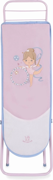El paquete incluye prácticos accesorios para un juego completo: plancha de plástico, 3 perchas para vestiditos y un cesto de tela fijado a la estructura. La tabla es plegable, fácil de transportar y de guardar, y gracias a los materiales de calidad (metal, plástico, textil) resiste el uso diario.