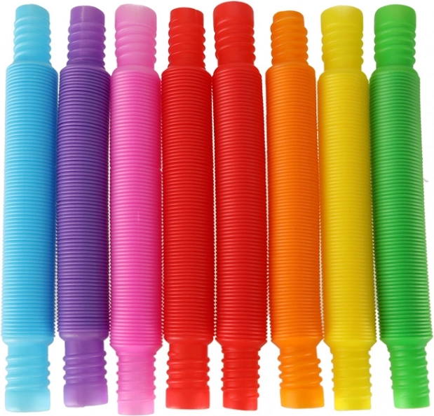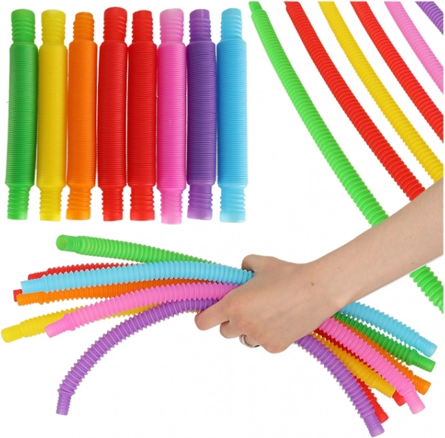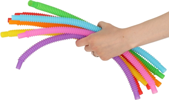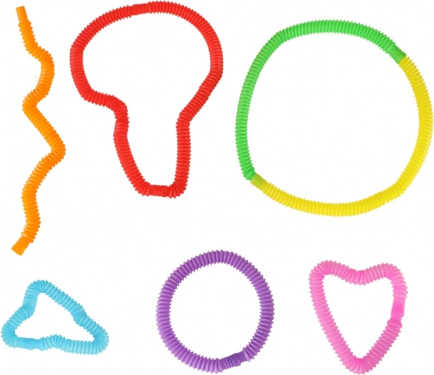 Al estirarlos, los tubos producen sonidos que captan la atención infantil y estimulan el oído. Su textura superficial ayuda además a desarrollar el sentido del tacto. Con tubos individuales se pueden crear formas sencillas como corazones, cuadrados o círculos, y al conectarlos es posible formar estructuras más complejas.