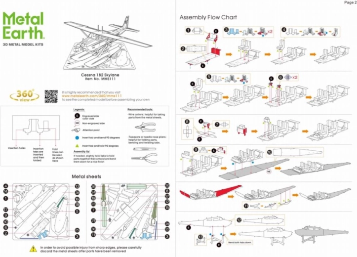 El modelo de hidroavión Cessna 182 Skylane de Metal Earth es un desafío ideal para quienes buscan un modelo elaborado al detalle. La complejidad y precisión del modelo están garantizadas mediante grabado láser, lo que da como resultado un acabado deslumbrante. El set incluye: