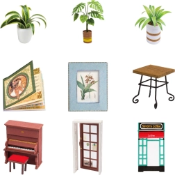 Desde muebles y plantas hasta un piano: el set incluye numerosos elementos en miniatura para lograr la máxima autenticidad.
