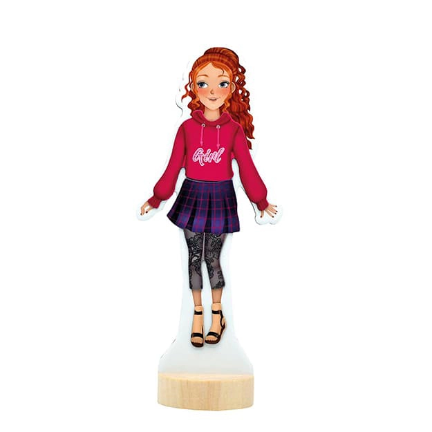 Esta muñeca magnética encantará a los pequeños amantes de la moda y las manualidades. Con 30 piezas magnéticas se pueden combinar fácilmente distintos atuendos, cambiar zapatos y accesorios y crear un estilo nuevo cada vez. La estable base de madera mantiene la muñeca en su sitio durante el juego y facilita la exhibición de las creaciones terminadas.