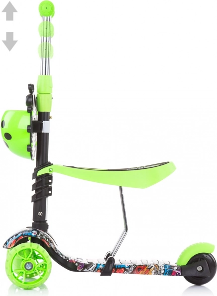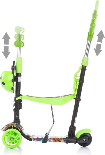 El patinete infantil 3 en 1 Kiddy Evo crece con tu hijo: desde correpasillos, pasando por el empuje guiado por los padres, hasta la conducción independiente. Ofrece un chasis estable de tres ruedas, manillar y asiento ajustables, ruedas delanteras con luces LED de colores y reposapiés antideslizante para paseos seguros y divertidos al aire libre.