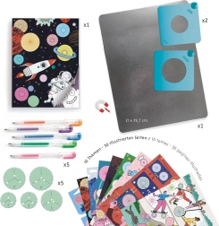 En la caja encontrarás todo lo necesario: desde la base metálica y los engranajes con tres orificios hasta los bolígrafos de gel de colores. Solo tienes que elegir una plantilla, fijarla con el marco magnético y ponerte a crear composiciones decorativas únicas.