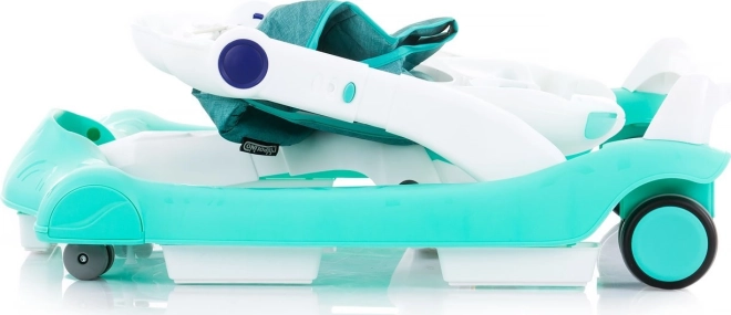 Andador infantil multifuncional 2en1 para niños hasta 12 kg que apoya los primeros pasos, desarrolla el equilibrio y la coordinación. Ofrece una base ancha para mayor estabilidad, 3 posiciones de altura del asiento, panel musical para estimulación sensorial y elementos de seguridad, incluyendo 5 topes y mecanismo de frenado en las ruedas traseras de goma. Se pliega fácilmente y cumple la norma EN 1273.