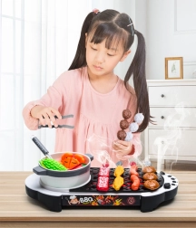 La barbacoa interactiva con luces y sonidos ofrece a los niños una experiencia auténtica de parrilla y fomenta la imitación de los adultos durante el juego.