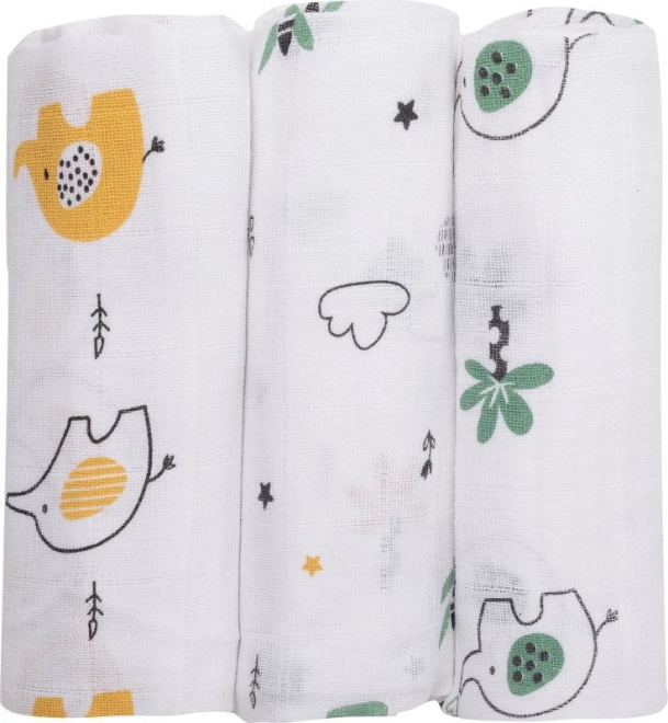 Los pañales de gasa son adecuados para un envoltorio amplio y también pueden ser útiles durante el baño, la alimentación y la lactancia. Funcionan como protección de la ropa al llevar al bebé y como manta o base durante el cambio. Son adecuados para la cuna, el cochecito e incluso para el coche.