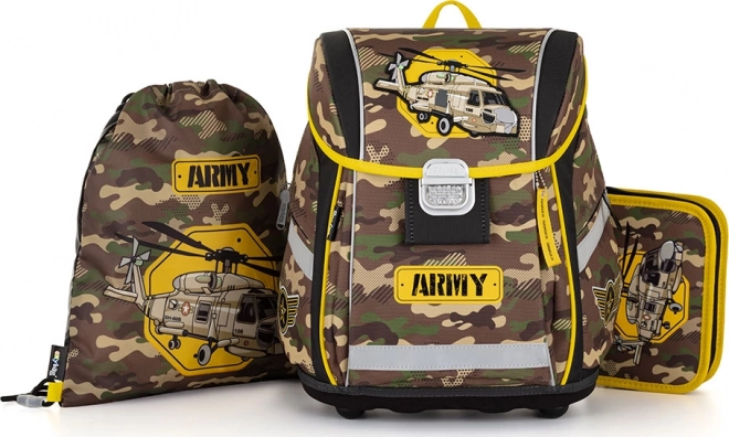 El conjunto escolar Helicóptero Premium Light combina un diseño único con funcionalidad y comodidad para tu hijo. Este set incluye una mochila escolar de calidad con elementos reflectantes y una distribución interior bien pensada. Gracias a la construcción aligerada y al acolchado ergonómico, ofrece la máxima comodidad al llevarla.