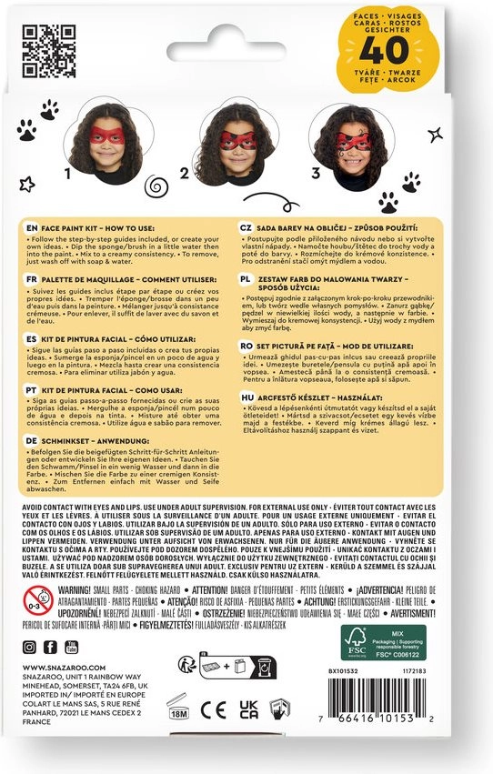 La fácil aplicación con pincel o esponja garantiza que cada uso sea rápido y sin complicaciones. Las pinturas son seguras incluso para pieles sensibles y se enjuagan fácilmente con agua y jabón.