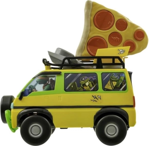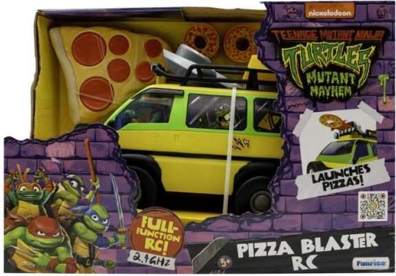 El coche RC Pizza Blaster está equipado con tecnología de 2,4 GHz para una conducción sencilla y fluida. Con este vehículo puedes lanzar hasta 6 pizzas de espuma a tus enemigos y disfrutar de una batalla trepidante como las auténticas Tortugas Ninja. El divertido mando con forma de porción de pizza añade una dosis extra de diversión y sencillez de manejo.
