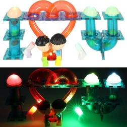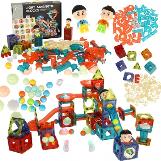 Bloques de construcción magnéticos con tobogán de canicas luminoso