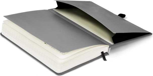 La encuadernación rígida y resistente protege tus notas, y la goma elástica las mantiene firmemente juntas en el uso diario. El práctico porta bolígrafo completa la comodidad general.