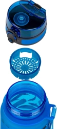 Esta botella de tritán con capacidad de 500 ml es un accesorio imprescindible para la escuela, excursiones o el club deportivo. La tapa con cierre asegura que no se derrame ni una gota, y el filtro integrado te permite preparar limonada o té. La cómoda correa facilita su transporte.