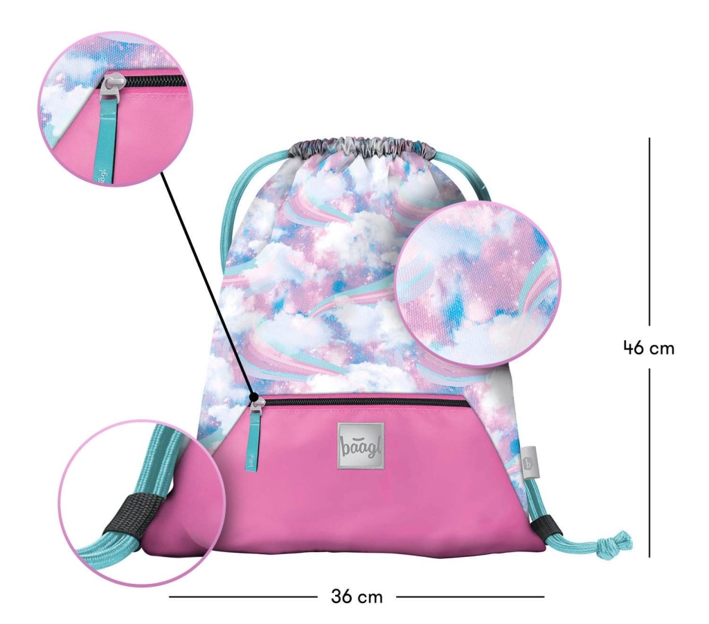 ¿Buscas una bolsa fiable para el calzado y pequeños objetos para tu tiempo libre? BAAGL presenta un práctico saco para la espalda que combina resistencia, funcionalidad y un estiloso motivo de cielo. Gracias al cierre con cordones, te lo pones fácilmente a la espalda y tendrás todo lo necesario siempre a mano.