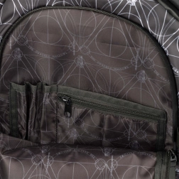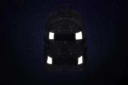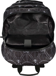 Dos resistentes correas frontales permiten sujetar el monopatín de forma segura. El moderno diseño en blanco y negro con el motivo de las Reliquias de la Muerte y elementos reflectantes garantiza que se te vea y luzcas genial.