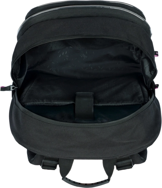 La mochila está fabricada con material impermeable y su bajo peso (900 g) facilita el manejo. La capacidad es de 25 litros con una carga máxima de 7 kg. La mochila está equipada con elementos reflectantes para mayor seguridad y un colgante peludo de tendencia como detalle elegante.