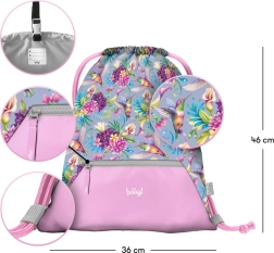 La práctica bolsa deportiva Baagl con motivo de colibrí es ideal para zapatillas, calzado y actividades de ocio. Tiene material resistente y lavable, práctico bolsillo frontal con cremallera y cordones resistentes para un cómodo transporte a la espalda. Gracias al mosquetón la puedes fijar fácilmente a la mochila escolar.