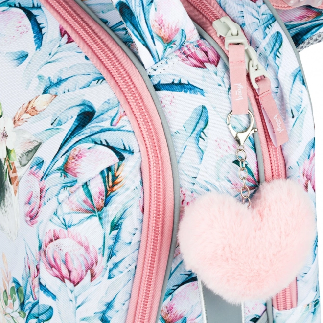 La estructura rígida de la mochila protege todo el contenido y aporta sensación de estabilidad. Gracias a los elementos reflectantes, el niño es siempre visible de camino a la escuela. La mochila también está equipada con un elegante llavero peludo que añade un toque moderno.