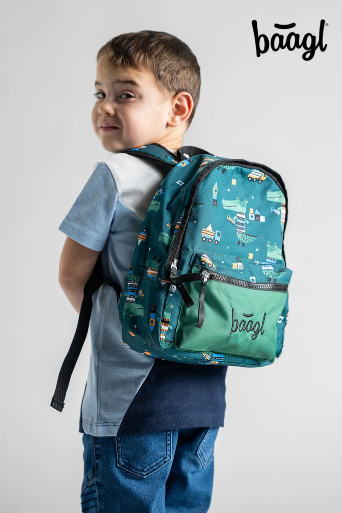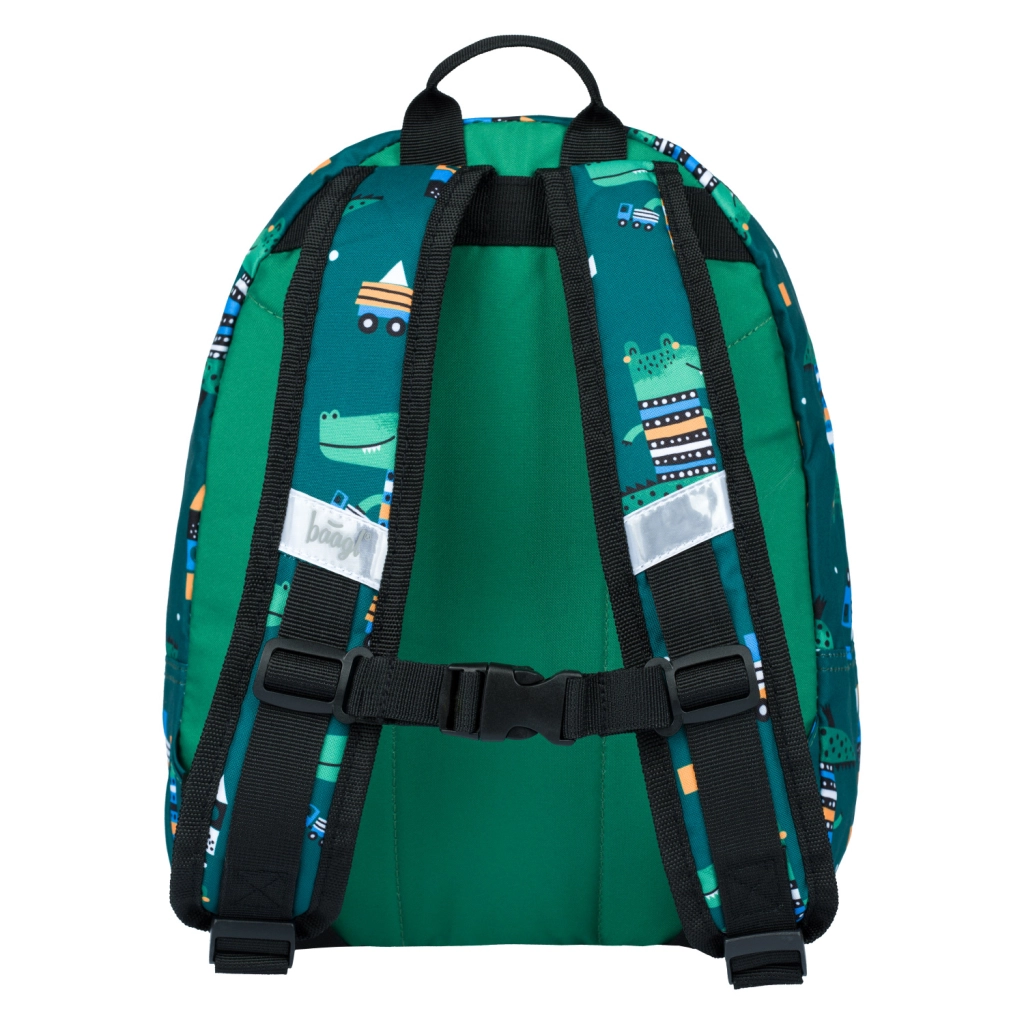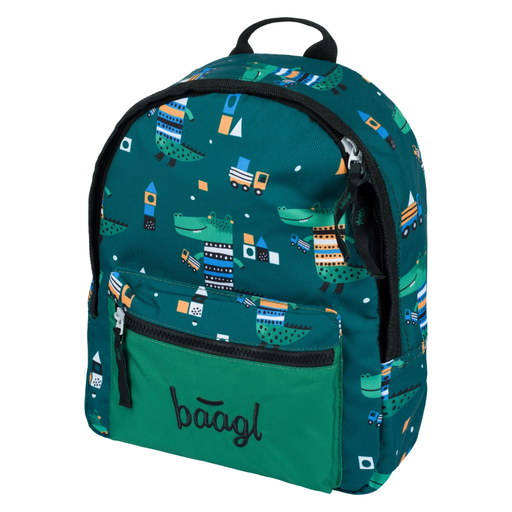 Mochila preescolar BAAGL ligera y resistente con motivo de cocodrilo para pequeños exploradores. Ofrece un compartimento principal y un práctico bolsillo frontal, espalda firme acolchada, tirantes acolchados ajustables en longitud, elementos reflectantes y está fabricada con material impermeable.