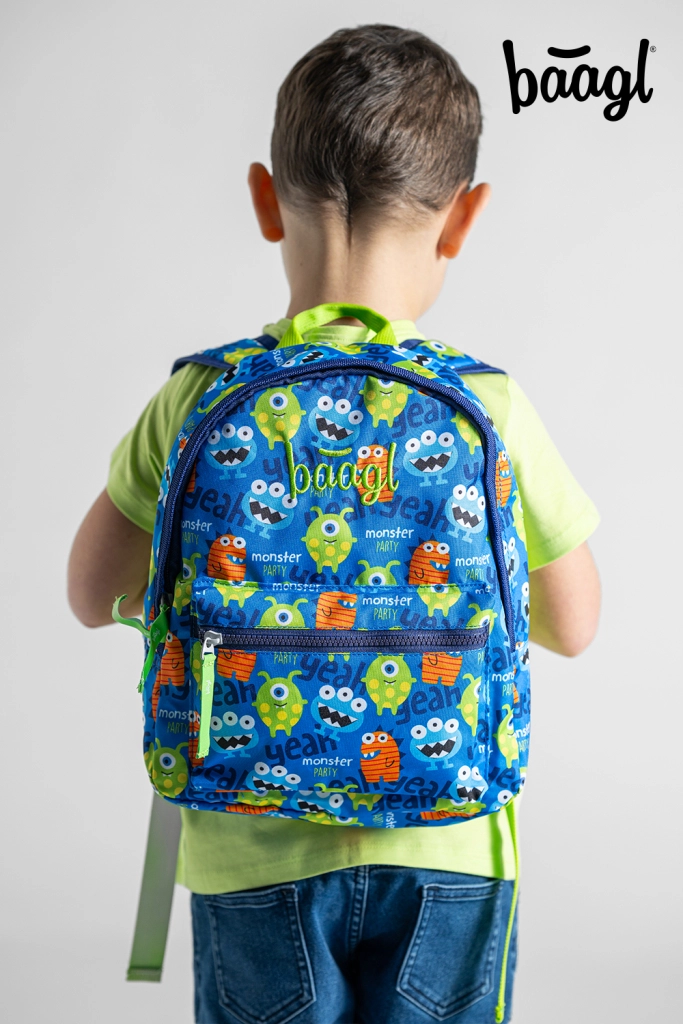 Los alegres motivos de “monstruos” en colores vivos divierten y motivan a los niños a llevar su mochilita solos al preescolar y de excursión.