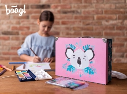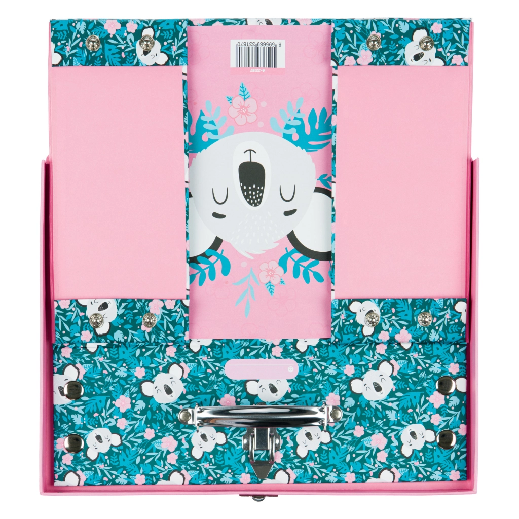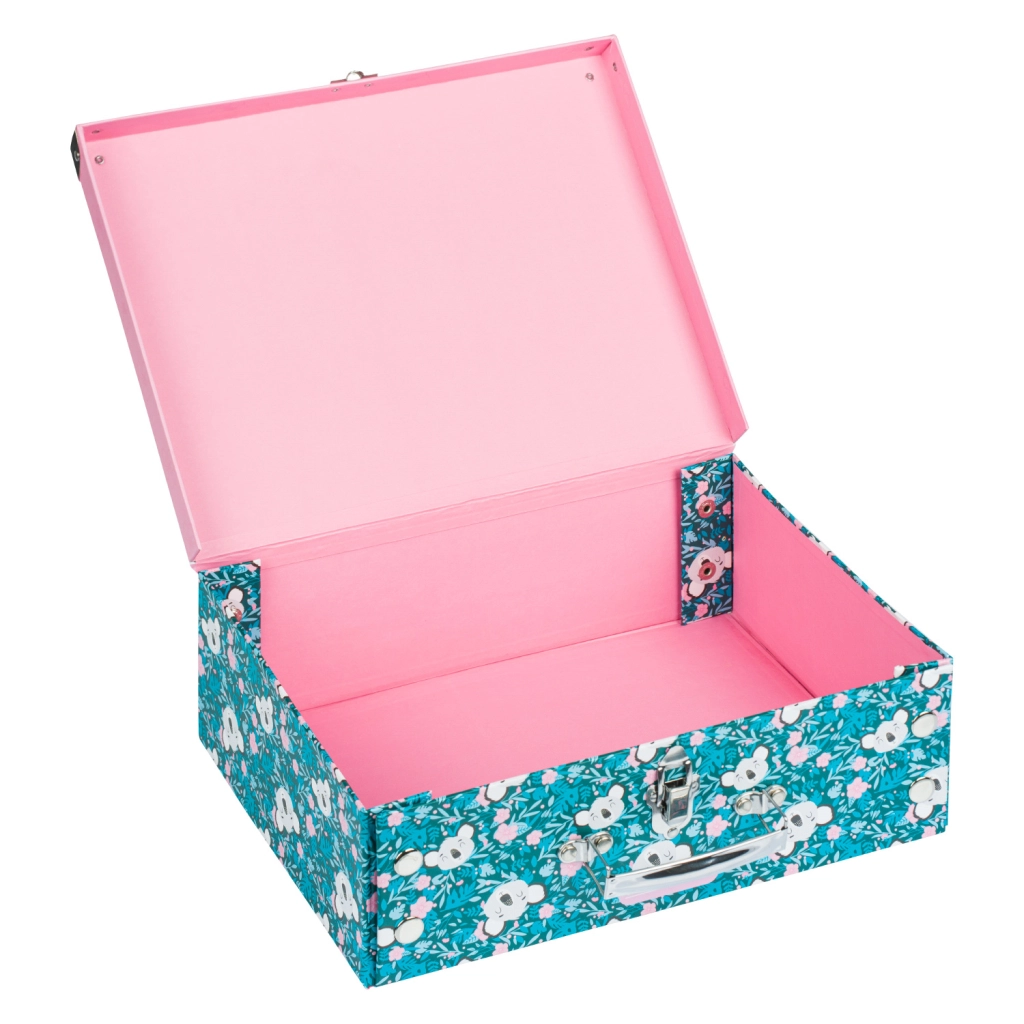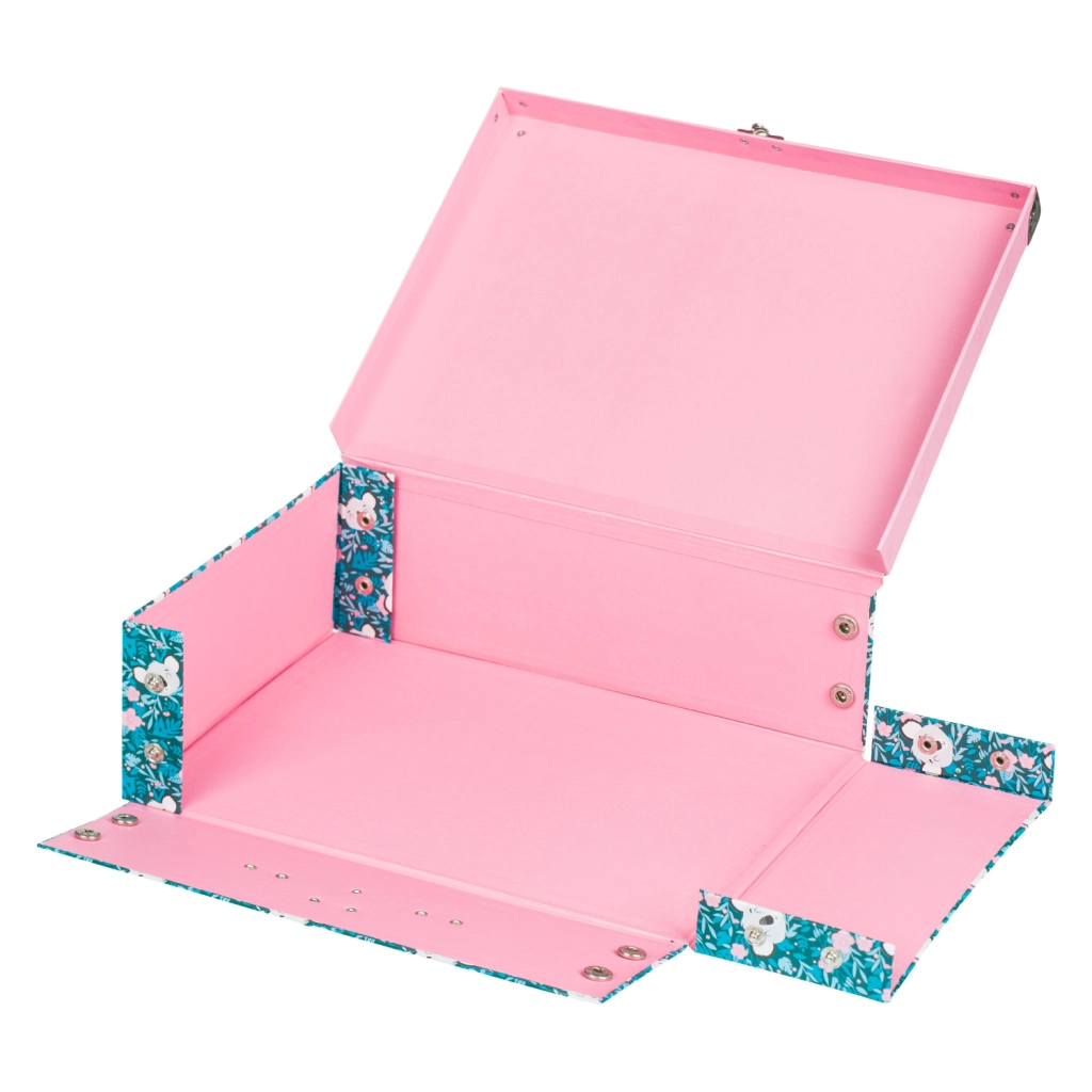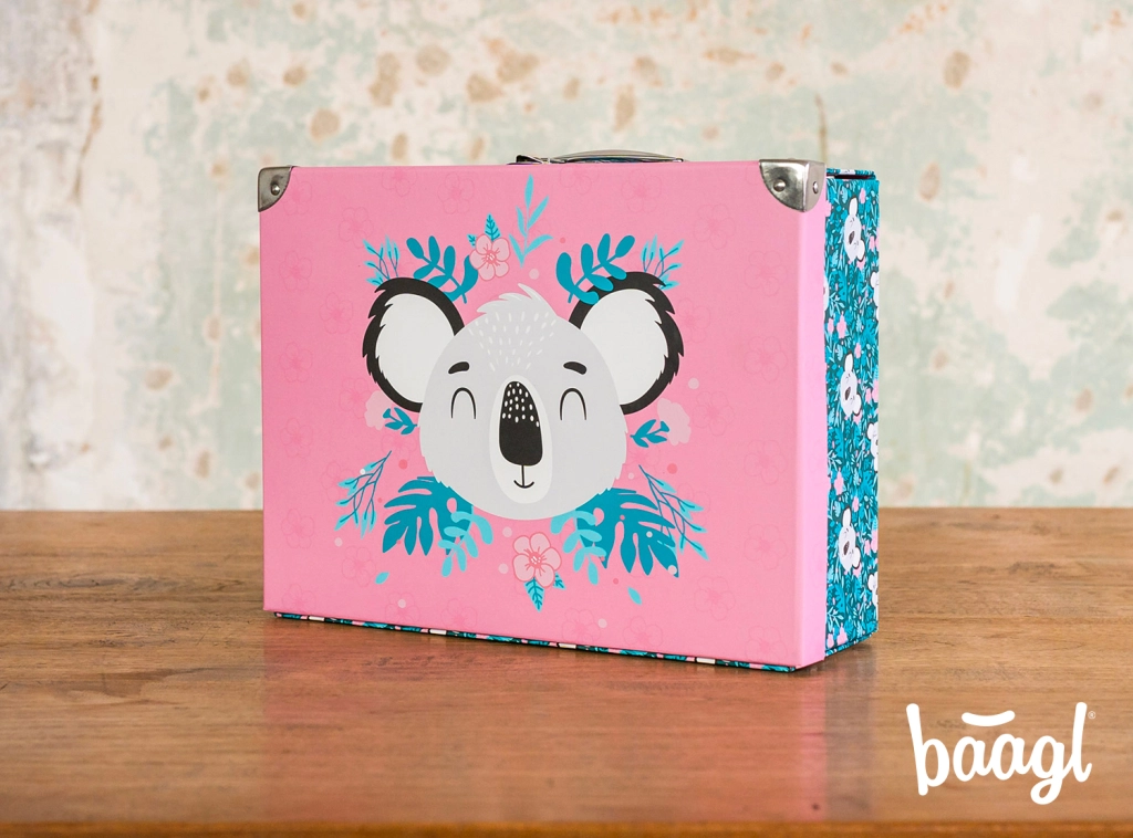 El maletín escolar plegable con un delicado motivo de koala es ideal para material de arte, cuadernos, juguetes y pequeños objetos para viajes. Los elegantes elementos metálicos y las esquinas reforzadas garantizan una larga vida útil, mientras que la estructura ligera de papel laminado resistente facilita el transporte diario.