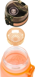 Botella infantil de tritán ligera y resistente con capacidad de 350 ml. Cuenta con tapa segura con bloqueo, diseño a prueba de fugas, práctico cordón de transporte y filtro para fruta o té. Fabricada con tritán certificado sin BPA, que no retiene olores y es apto también para bebidas calientes.