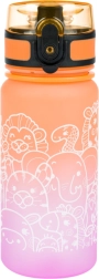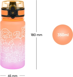 Esta botella infantil de tritán de alta calidad es ideal para la escuela, excursiones y deporte. Gracias a la tapa con bloqueo no se derrama ni una gota, y el práctico cordón facilita el transporte. El atractivo degradado en naranja y rosa con motivos de animales encantará a los niños.