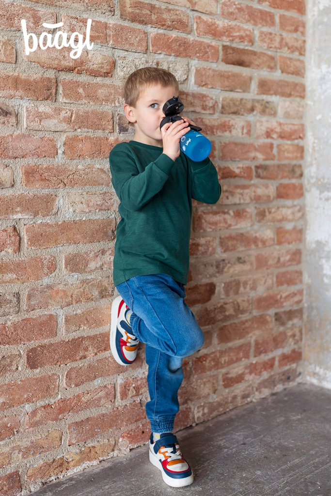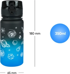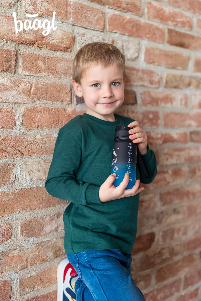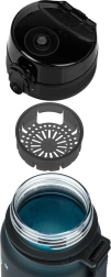 Esta botella de tritán BAAGL de 350 ml, con un atractivo degradado de negro a azul, es una compañera fiable para la hidratación diaria. La tapa con bloqueo evita derrames accidentales y permite una apertura rápida e intuitiva con una sola mano. Gracias al filtro integrado, disfrutarás de agua con fruta y tés a granel; el material es apto también para bebidas calientes.