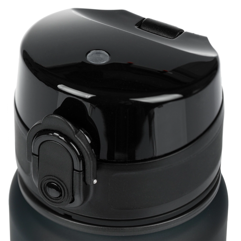 La tapa con botón para apertura rápida evita derrames en la mochila y permite beber cómodamente con una sola mano, ideal para la escuela y el deporte.