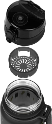La práctica tapa flip con seguro evita aperturas accidentales en la mochila y permite beber cómodamente con una mano. Incluye un filtro extraíble para bebidas con fruta o té; el material también es adecuado para bebidas calientes. El cordón integrado facilita el transporte, por lo que la botella es perfecta para el colegio, los entrenamientos y los viajes.