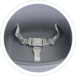 Las patas metálicas con conteras antideslizantes, el bloqueador antideslizamiento y el arnés de 3 puntos garantizan una posición segura para tu niño.
