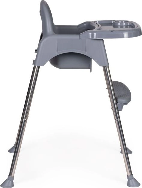 Gracias a su diseño inteligente, puedes convertir la trona alta en una silla más baja desenroscando parte de las patas y el reposapiés. No solo sirve para comer, sino también como un lugar seguro para pintar y crear sin preocuparte por ensuciar alrededor. Las patas metálicas con conteras antideslizantes protegen el suelo y aseguran la estabilidad; el arnés de 3 puntos y el bloqueador antideslizamiento incrementan la seguridad.