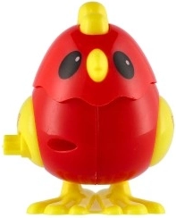 El pollito está disponible en variantes roja y amarilla: colores llamativos que encantan a los niños.