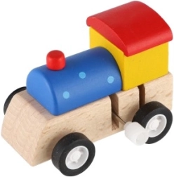 El acabado seguro de madera y los colores intensos invitan al juego y desarrollan la imaginación. El trenecito está disponible en diferentes variantes de color (surtido), y es perfecto como pequeña recompensa, recuerdo o complemento para circuitos de trenes de madera.