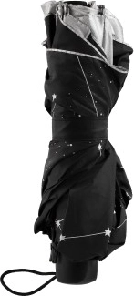 Elegante paraguas plegable con exterior plateado y motivo interior de constelaciones que combina ligereza, dimensiones compactas y protección fiable contra la lluvia. Con solo 25 cm de longitud plegado, cabe fácilmente en el bolso o la mochila y es ideal para el uso diario.