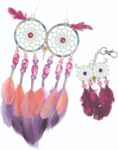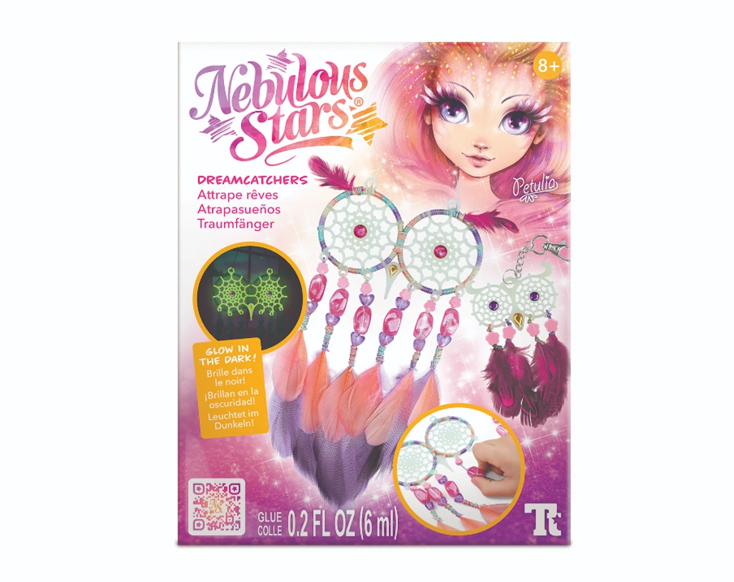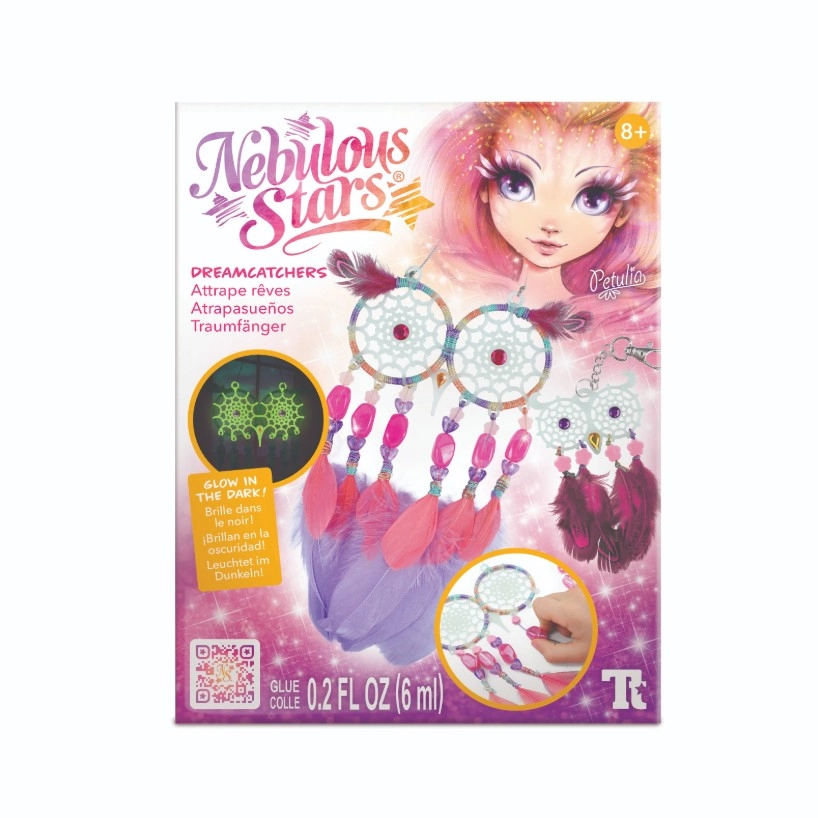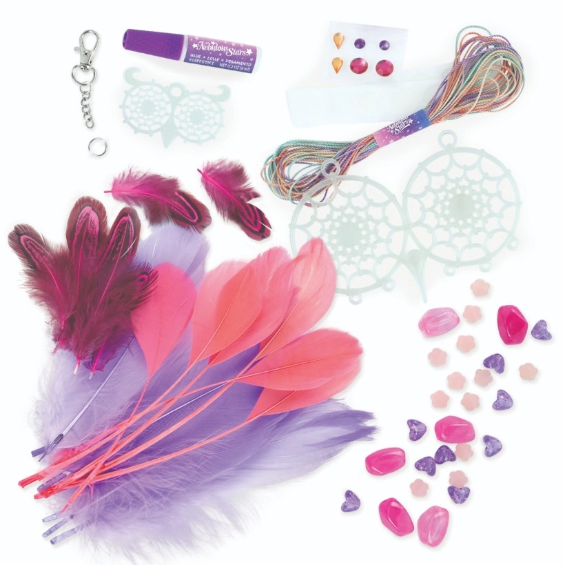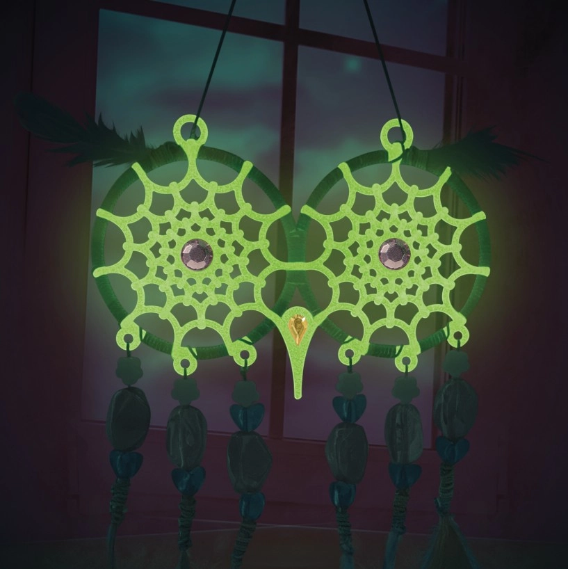 ¡Crea tus propios atrapasueños mágicos con la marca Nebulous Stars! Este set creativo permite a los niños fabricar 2 atrapasueños de búho con efecto que brilla en la oscuridad, decorados con plumas, cuentas y pegatinas con gemas. Una actividad ideal para desarrollar la motricidad fina, la creatividad y para relajarse antes de dormir.