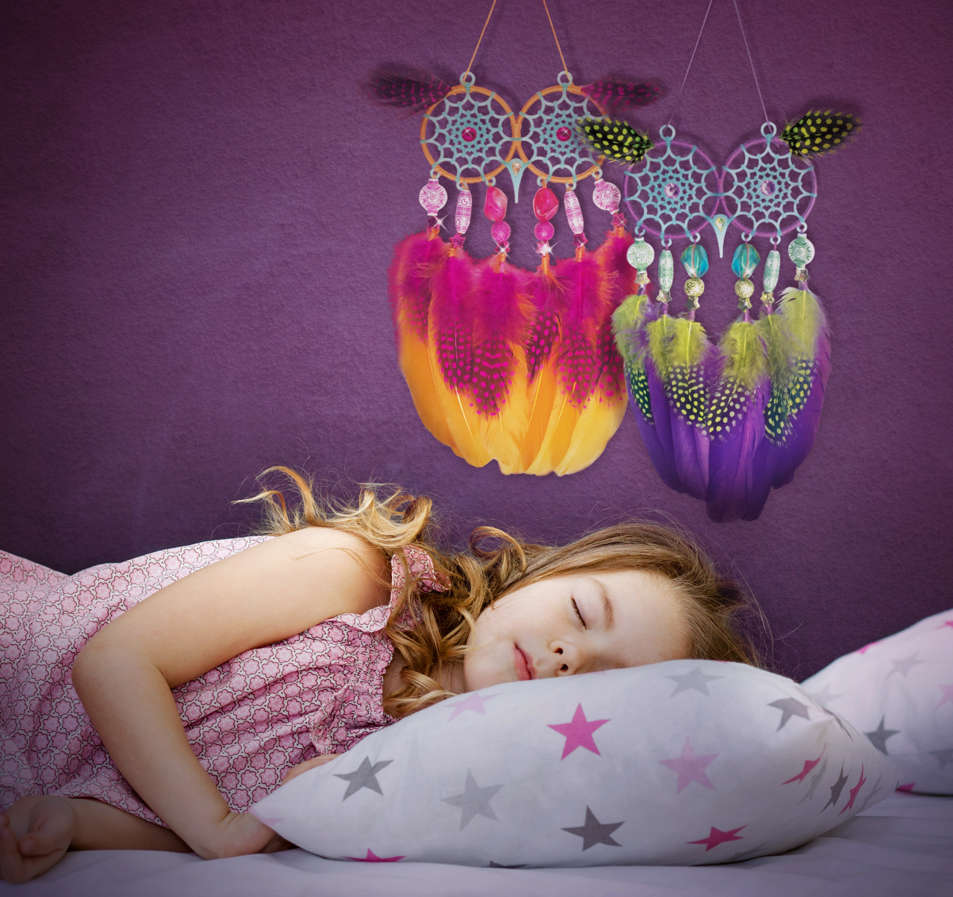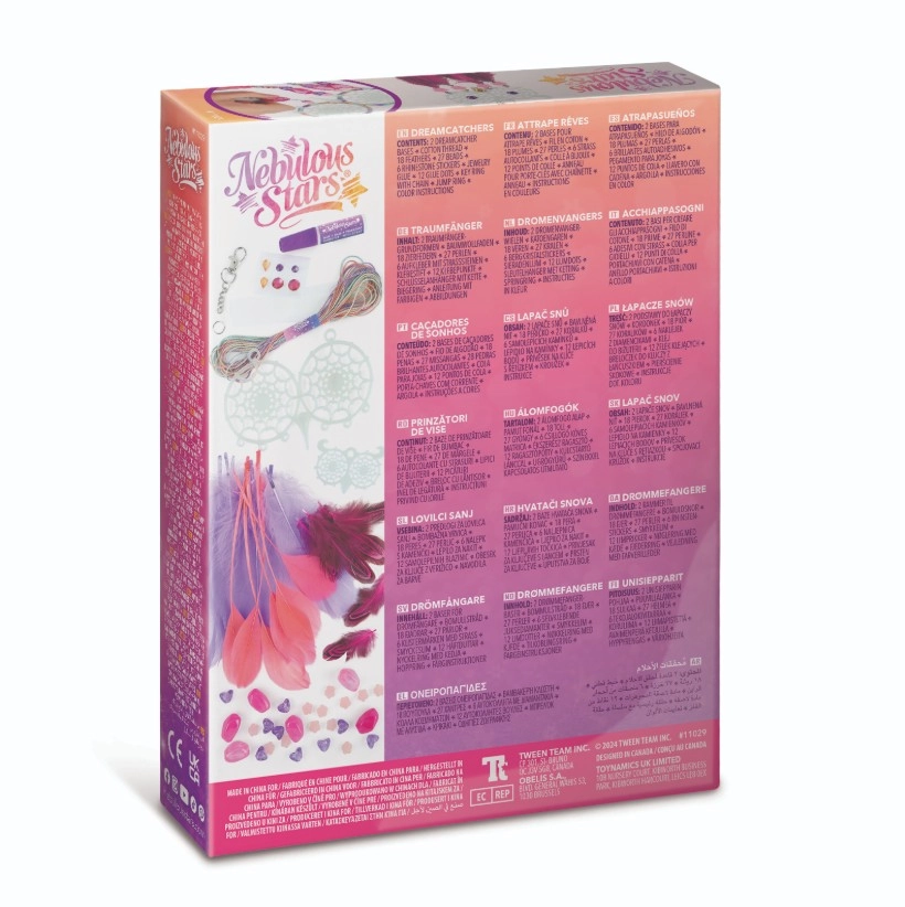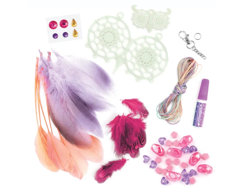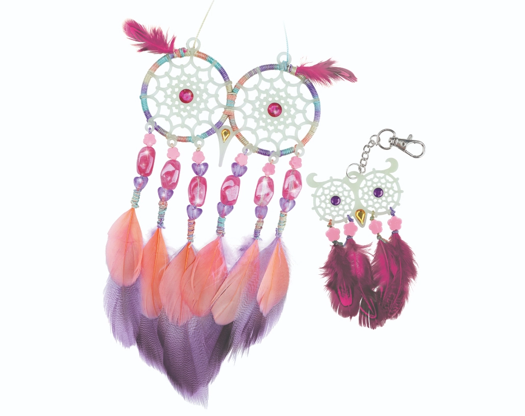 ¡Crea tus propios atrapasueños mágicos con la marca Nebulous Stars! Este set creativo permite a los niños fabricar 2 atrapasueños de búho con efecto que brilla en la oscuridad, decorados con plumas, cuentas y pegatinas con gemas. Una actividad ideal para desarrollar la motricidad fina, la creatividad y para relajarse antes de dormir.